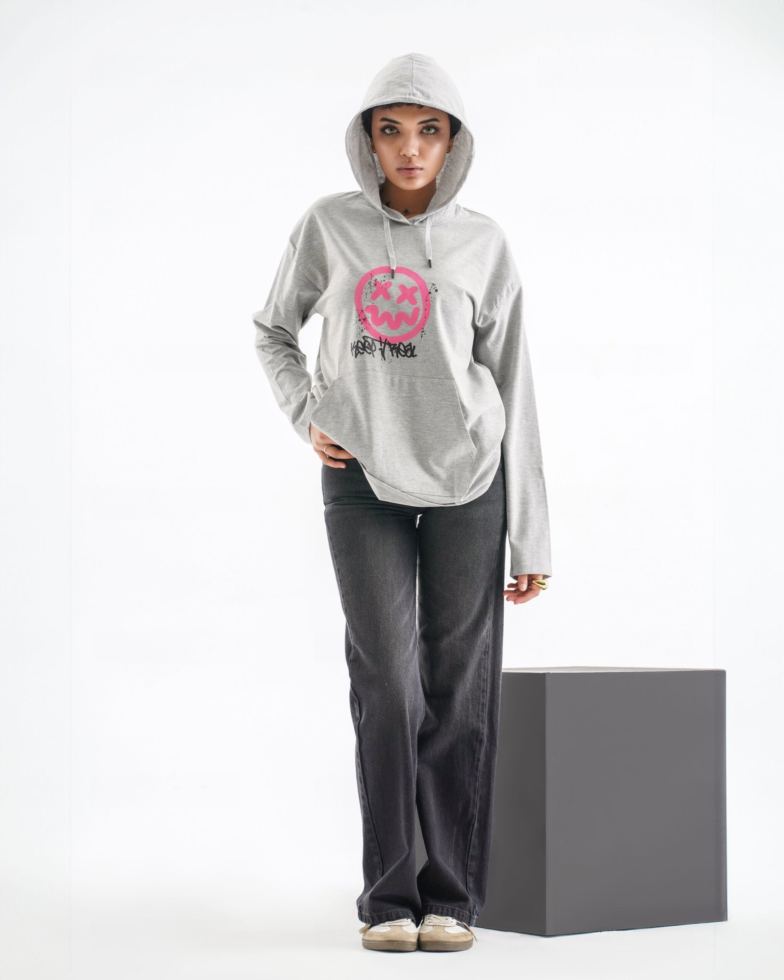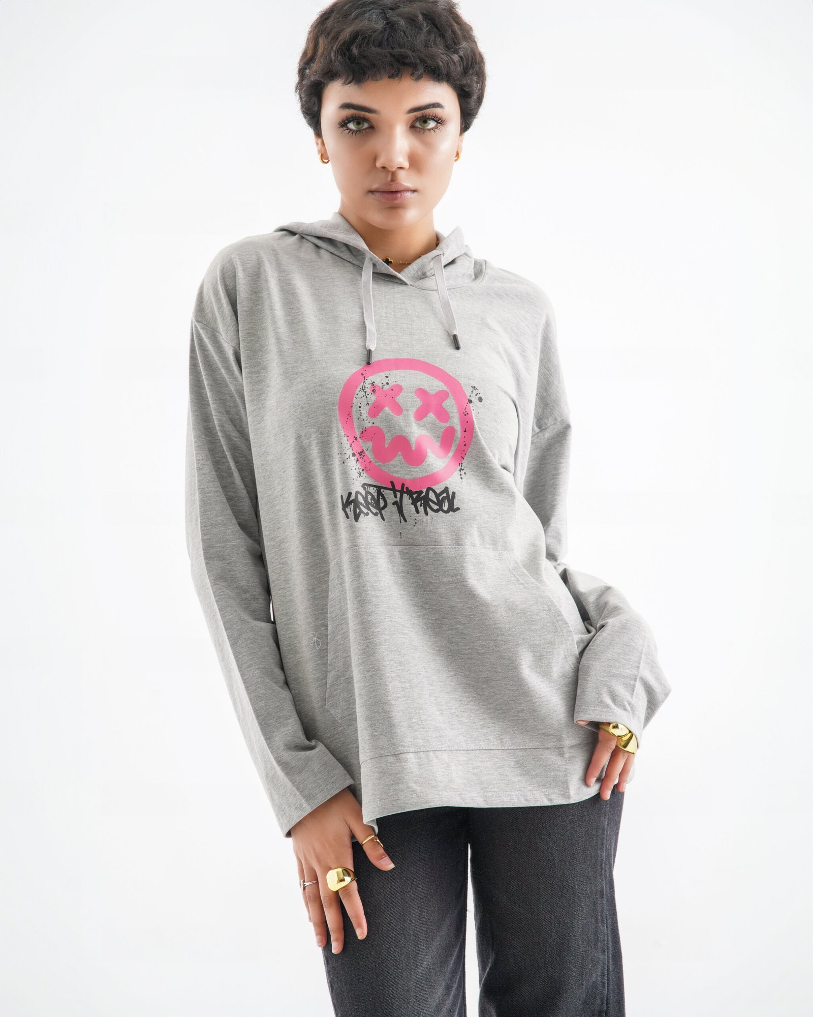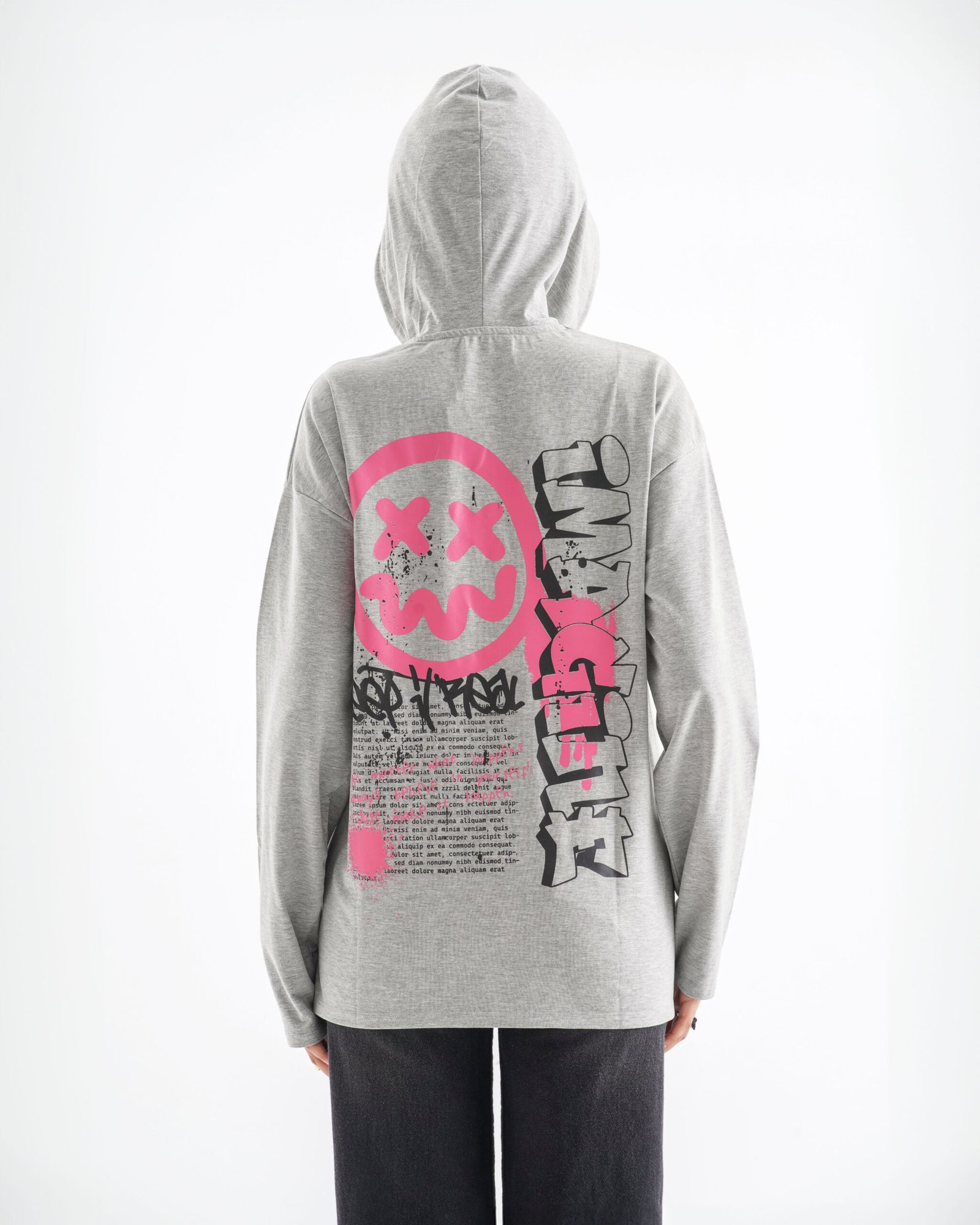 Infuse your wardrobe with raw energy and urban attitude. The Keep It Real long sleeve hoodie isn’t just clothing—it’s a bold canvas of self-expression. Set in a soft light grey hue, it features striking pink and black graffiti-style graphics, a distressed smiley face motif, and typographic flourishes that bring street culture to life.