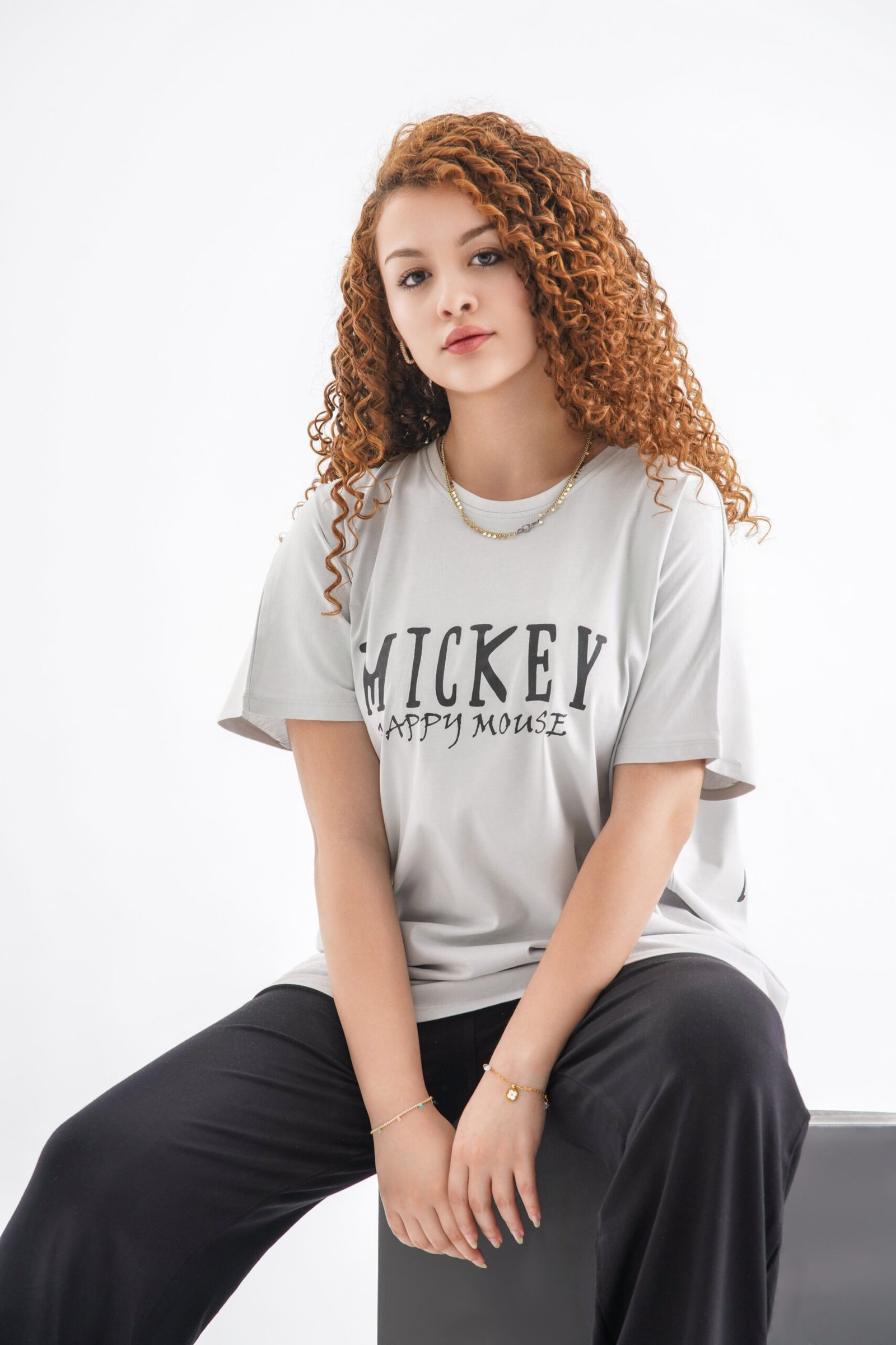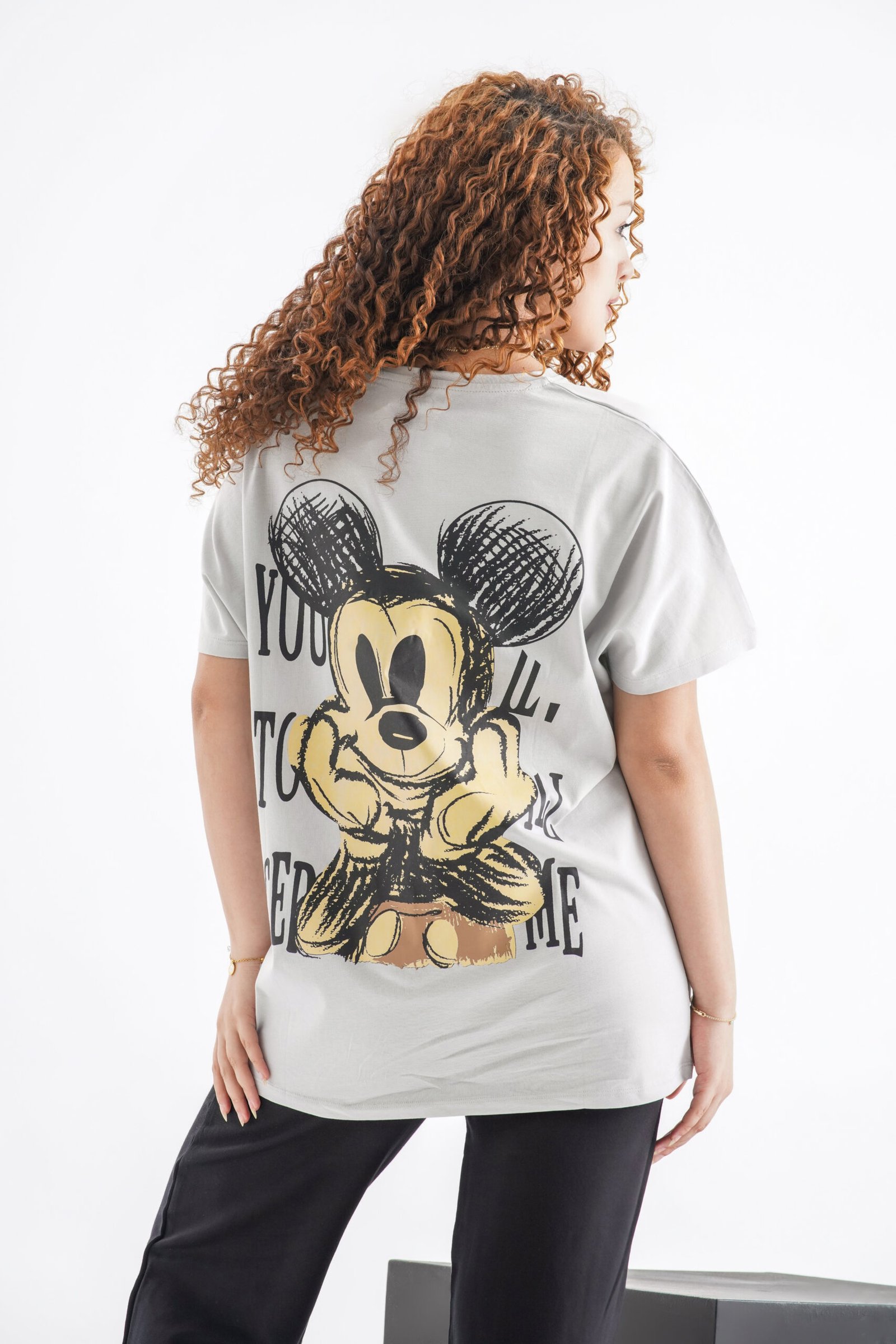 Mickey Mouse Oversized T-Shirt – Light Grey (Front & Back Design)